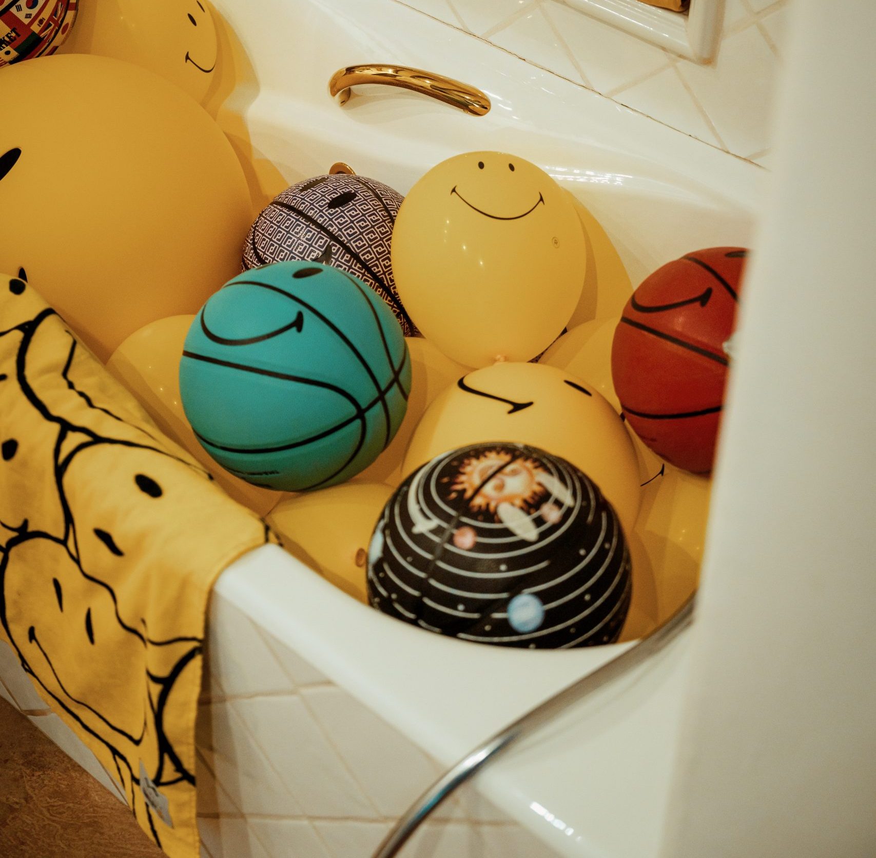It debuted at MAGIC in Las Vegas, with an exclusive preview of the innovative activewear collection based on Smiley’s signature positivity and its sports balls iconography.