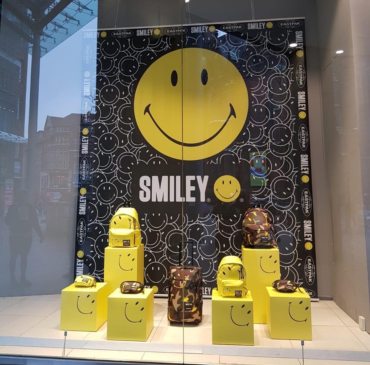 The Smiley x EASTPAK collection first launched in 2019, featuring a vibrant lineup of backpacks, mini bags, and luggage. Sold globally, this on-trend range has been supported by an innovative marketing campaign, spanning eye-catching window displays to dynamic social media activations.